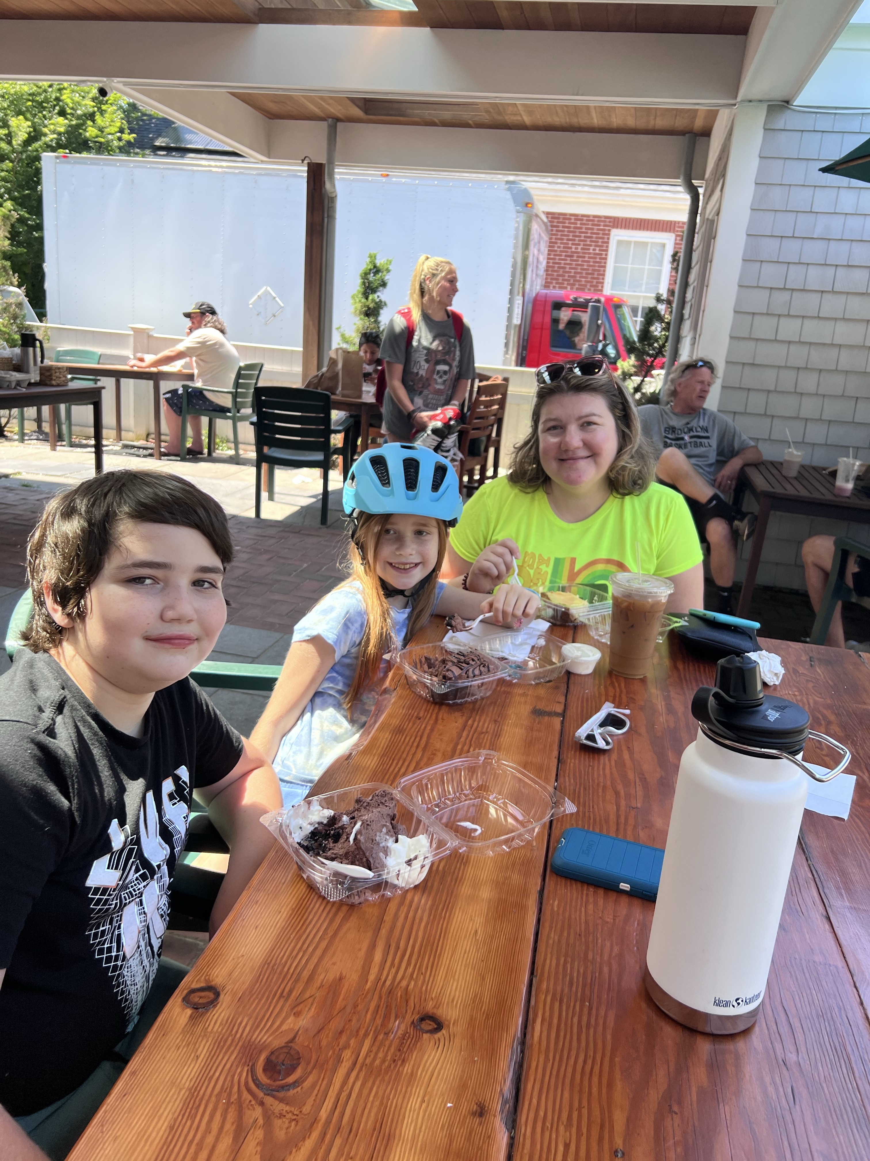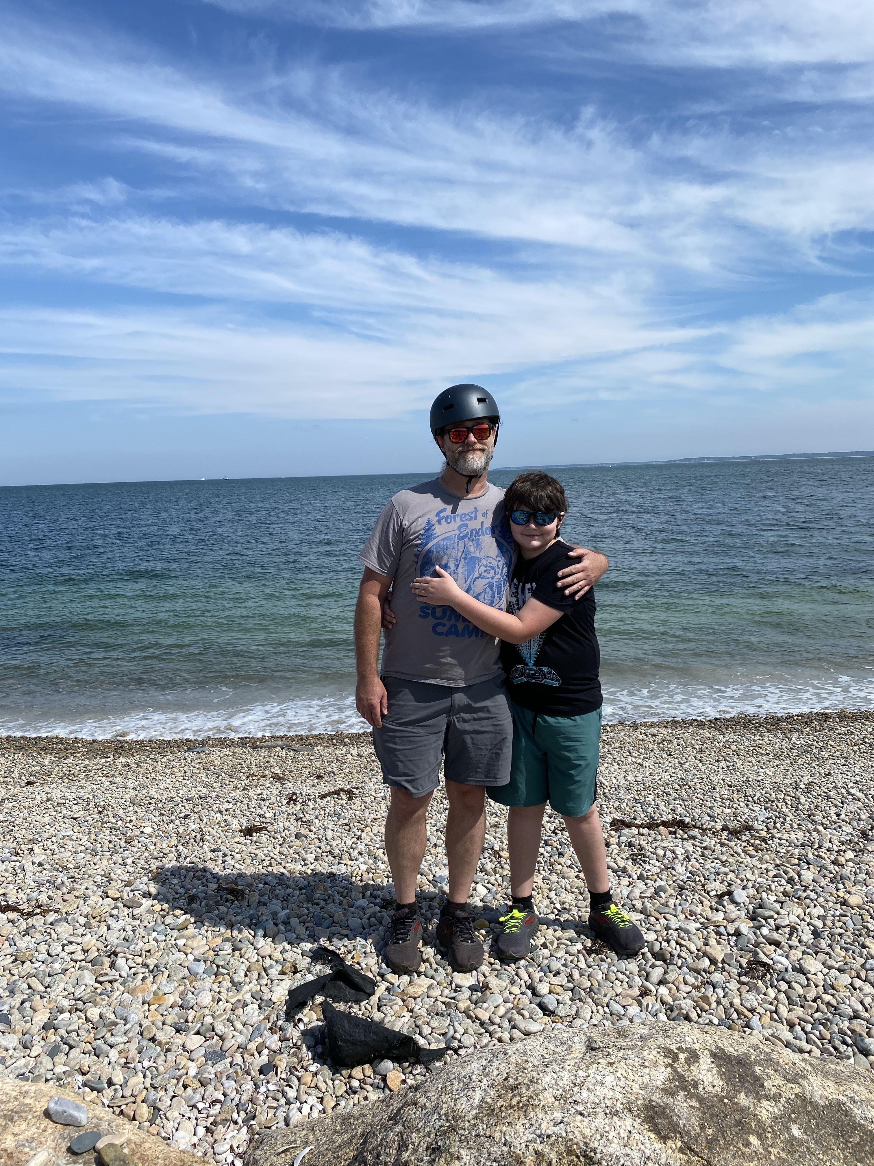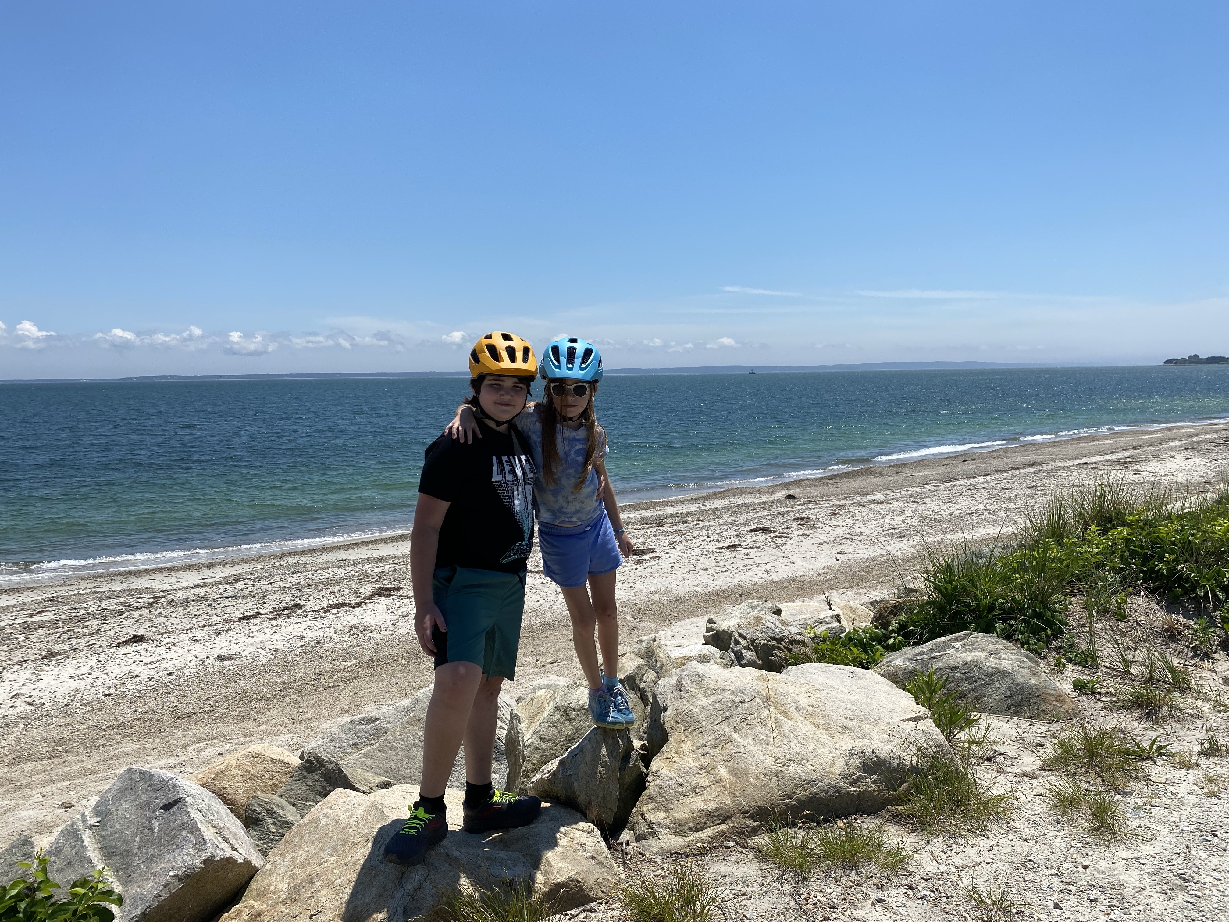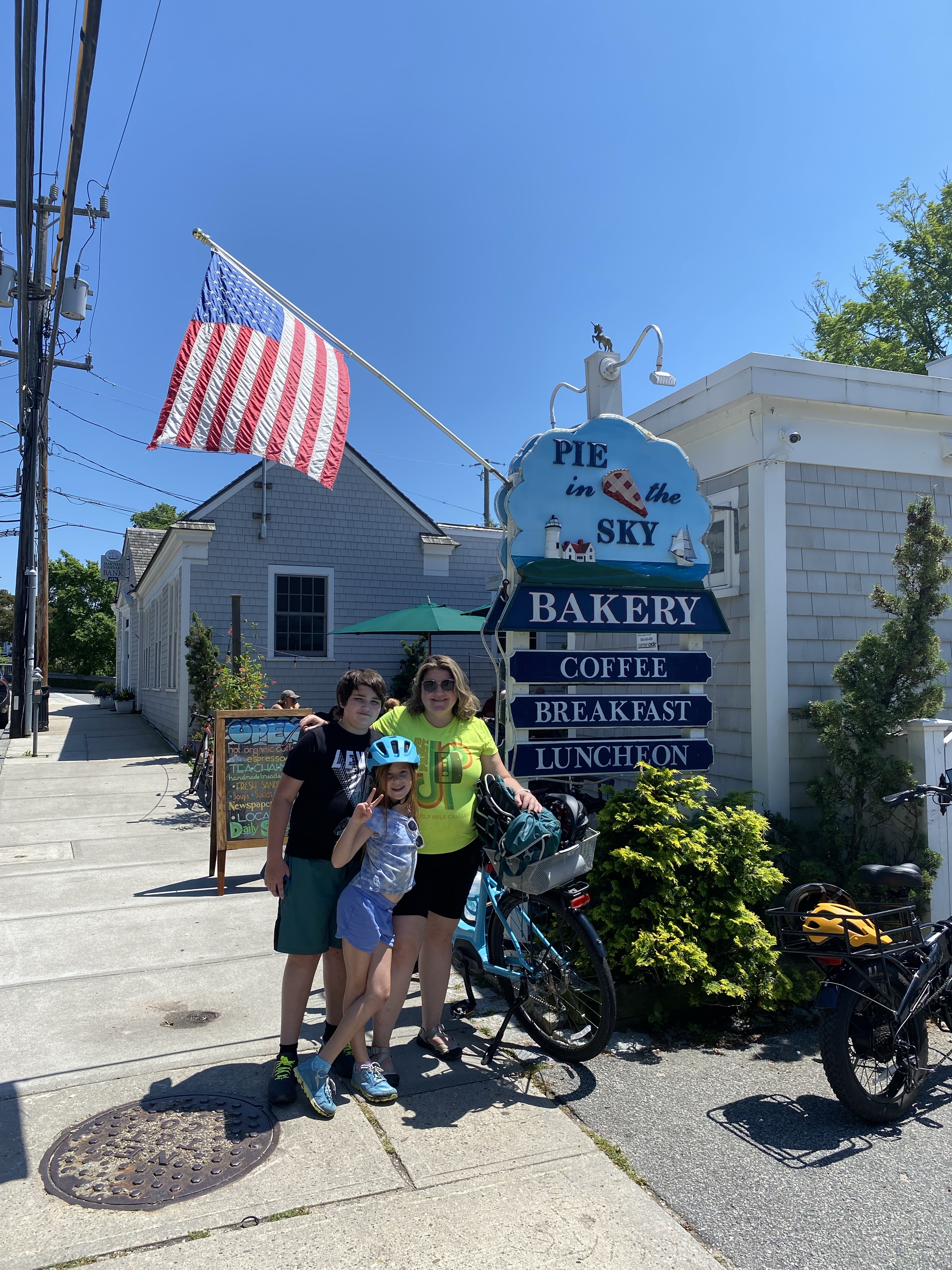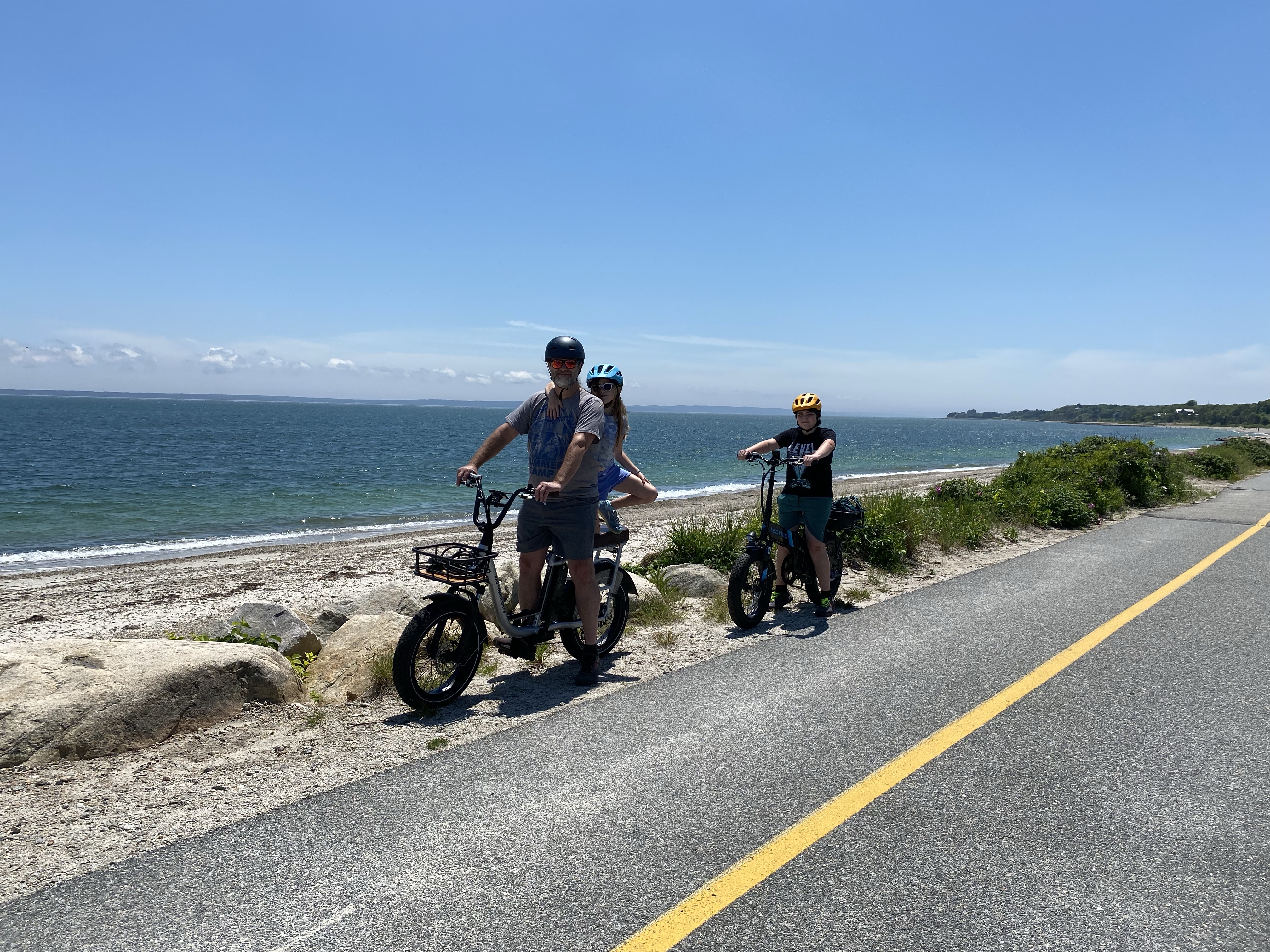 We spent an incredible day biking through the Cape Cod, MA towns of Falmouth and Woods Hole. We rode an 8 mile round trip section of the Shining Sea Bikeway. It’s a rails to trail paved bikeway that hugs the coast with views of Martha’s Vineyard. It’s a total of 10 miles (20 round trip) which was more of a commitment than we wanted to embark on today, but the option to park and start mid-way was perfect.