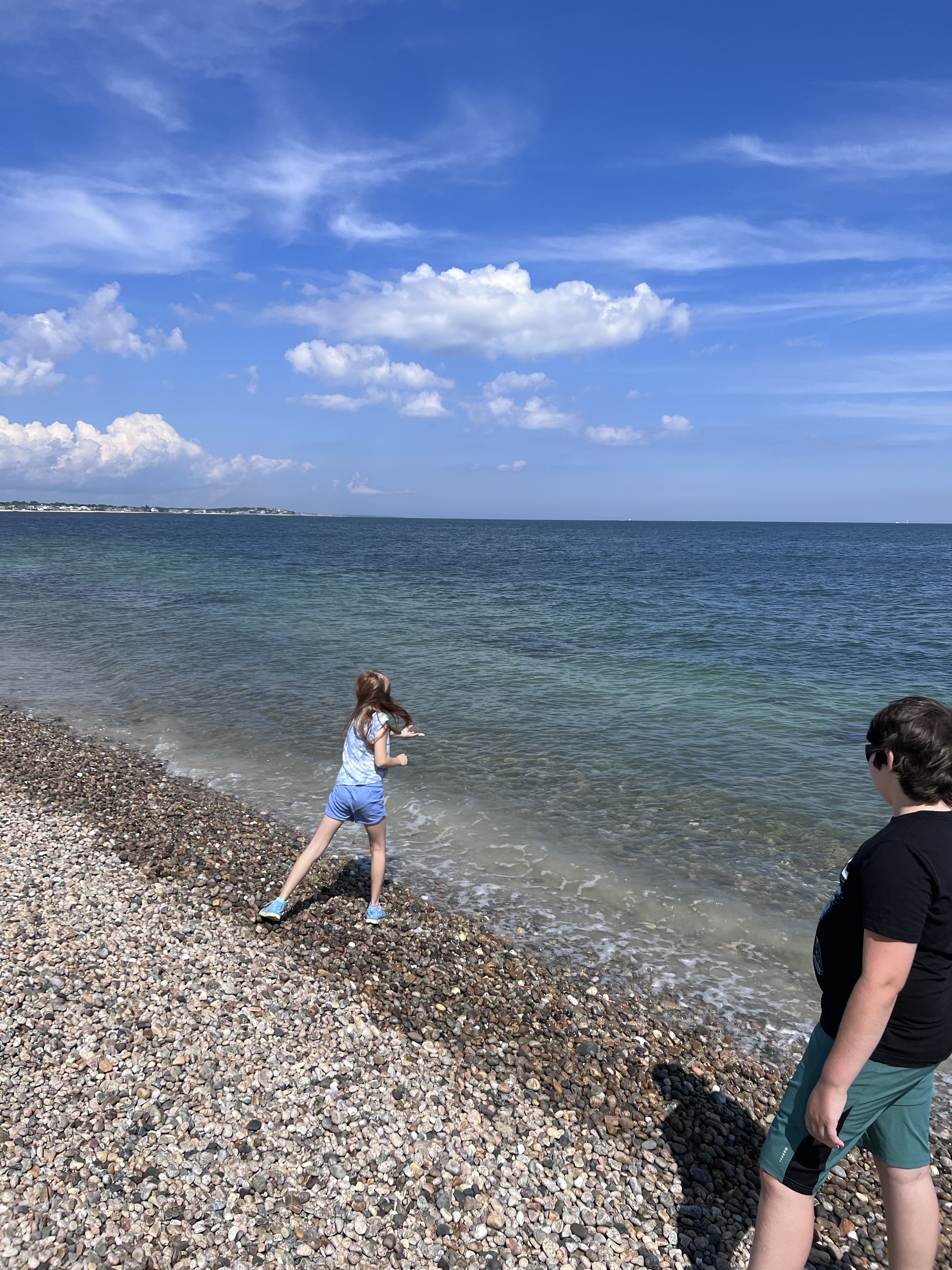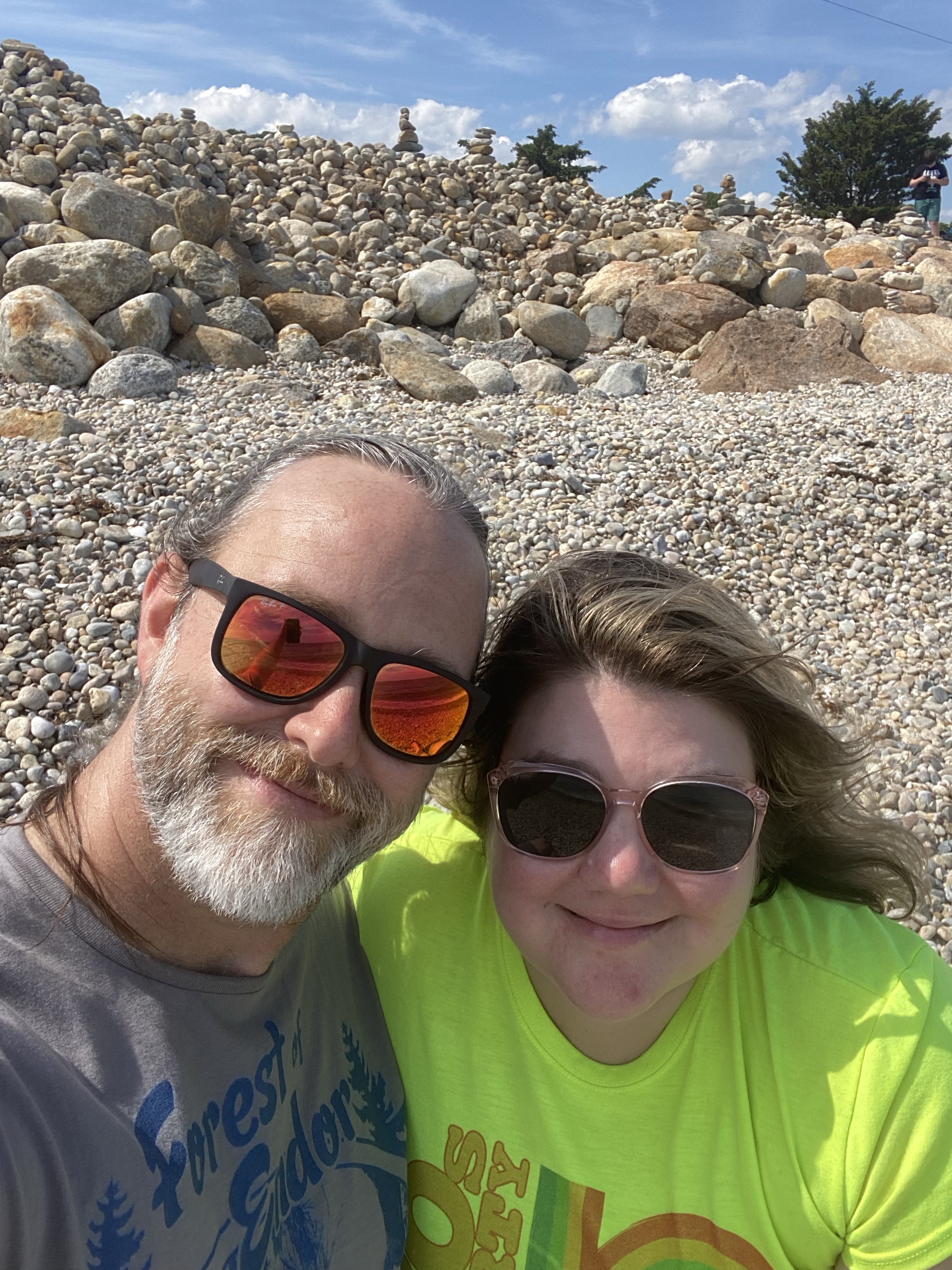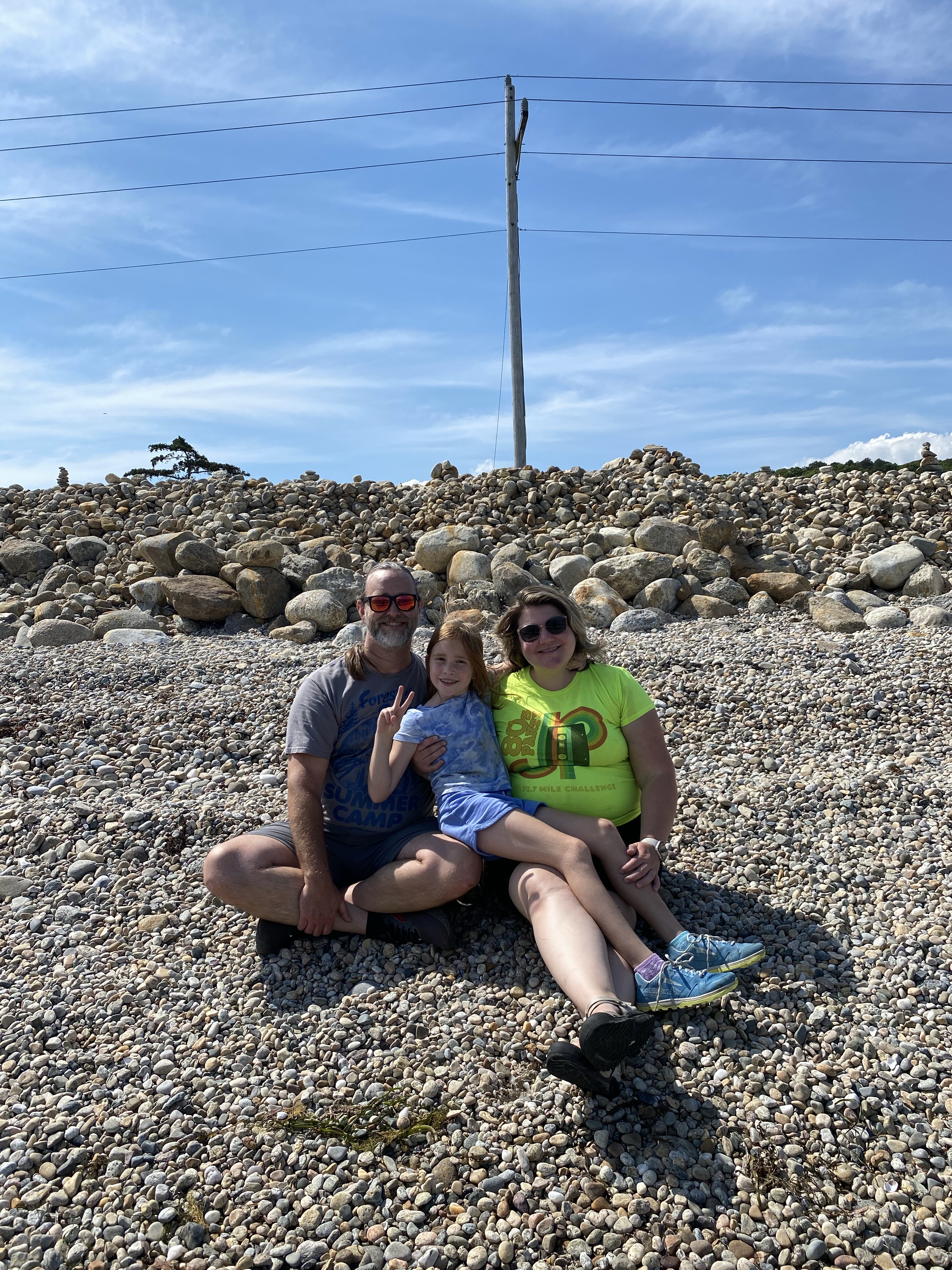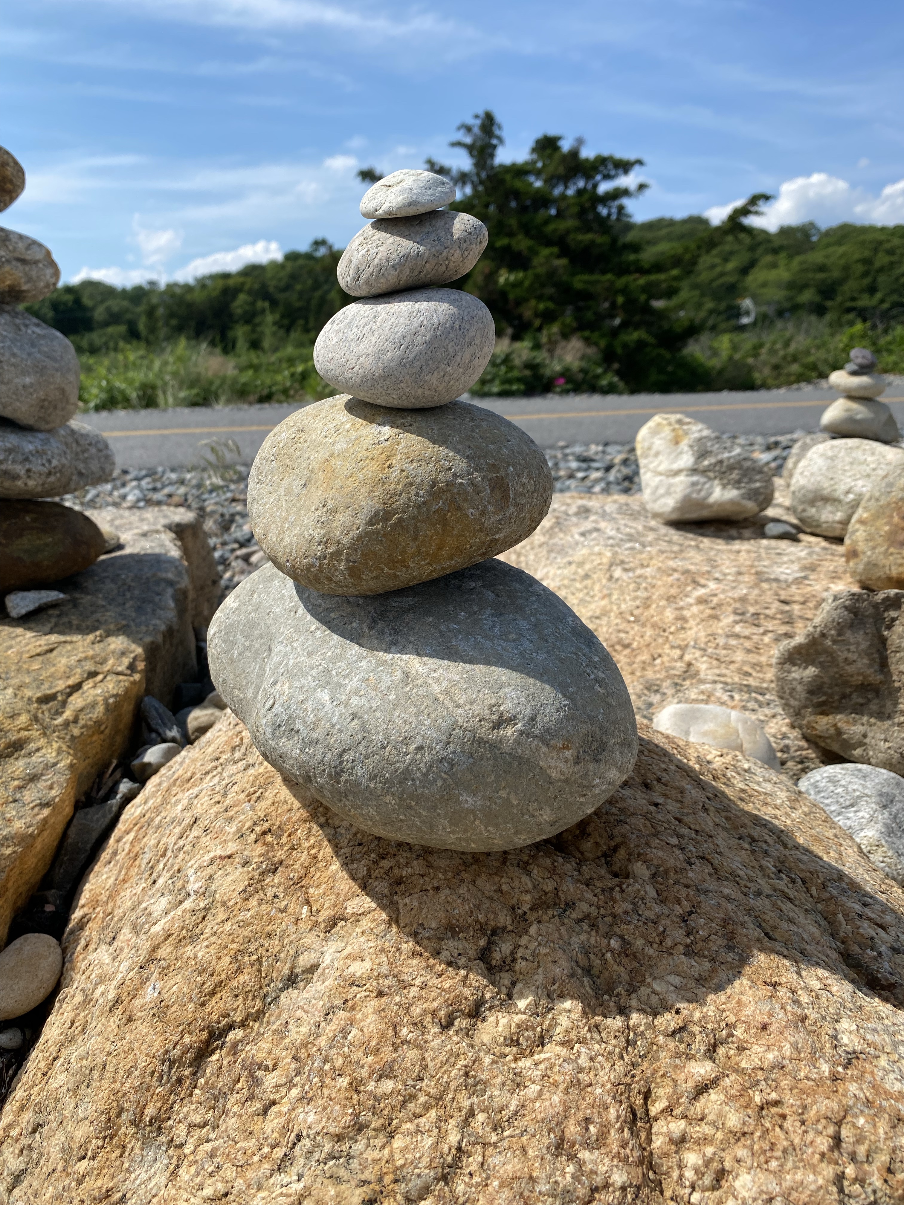 In Woods Hole we hit up Pie in the Sky for coffee and delicious slices of pie. On our way back to the truck we stopped along the trail to sit on the rocky beach and watch the waves. There is a section where a rock carin garden has organically sprung up. I find rock carins inspiring; I love how they embody restraint and balance. Penelope built a carin to add to the collection.