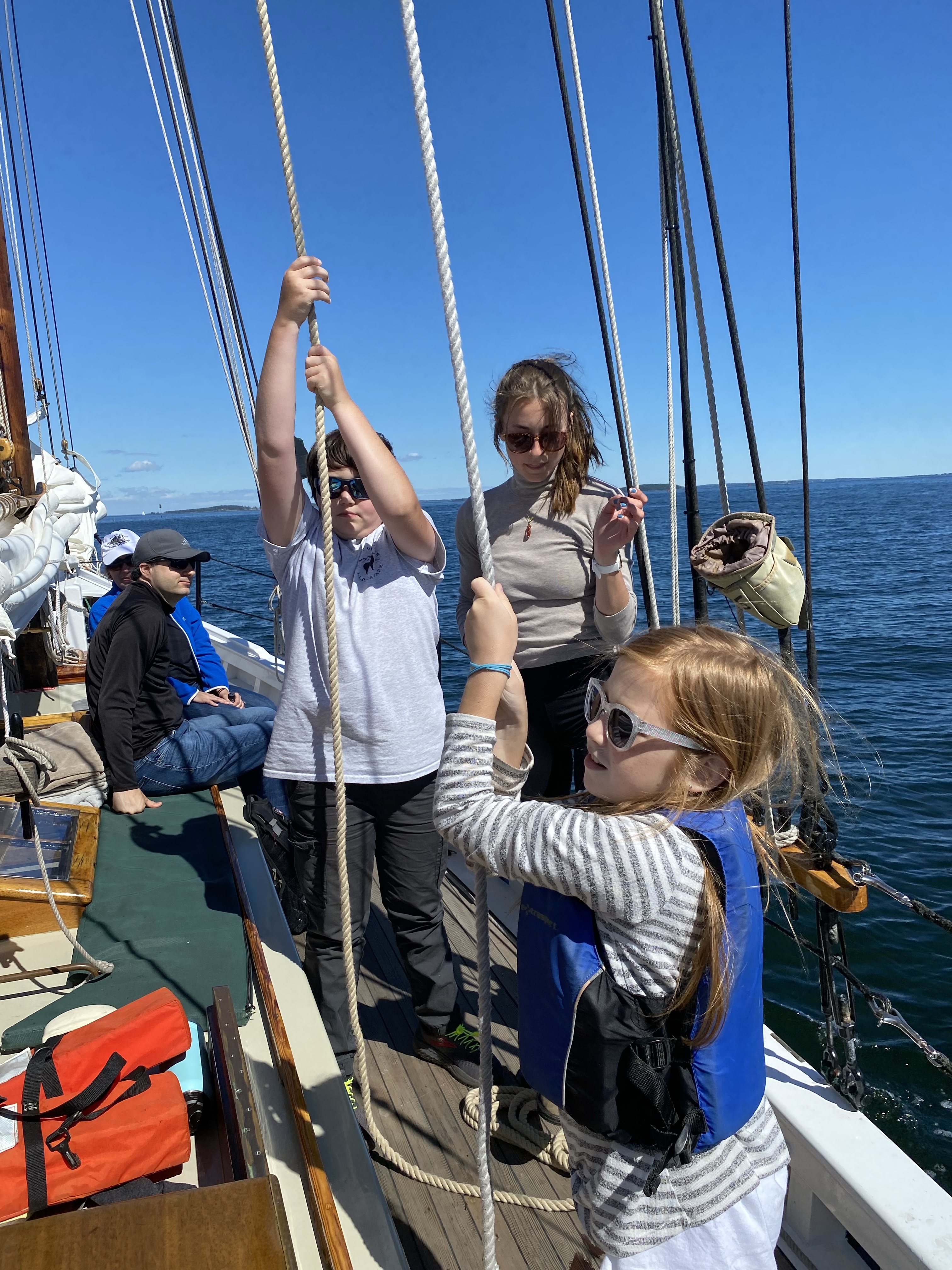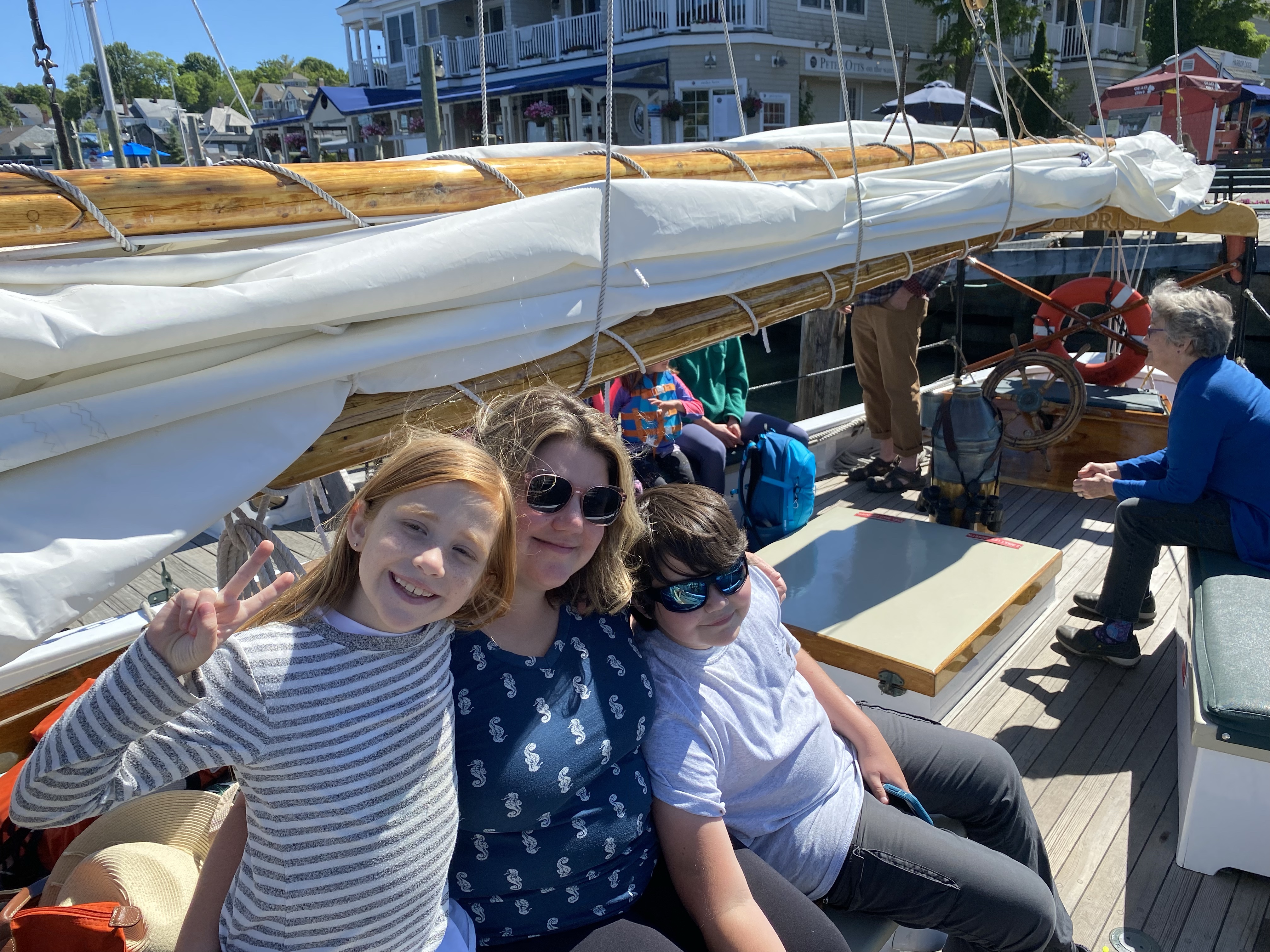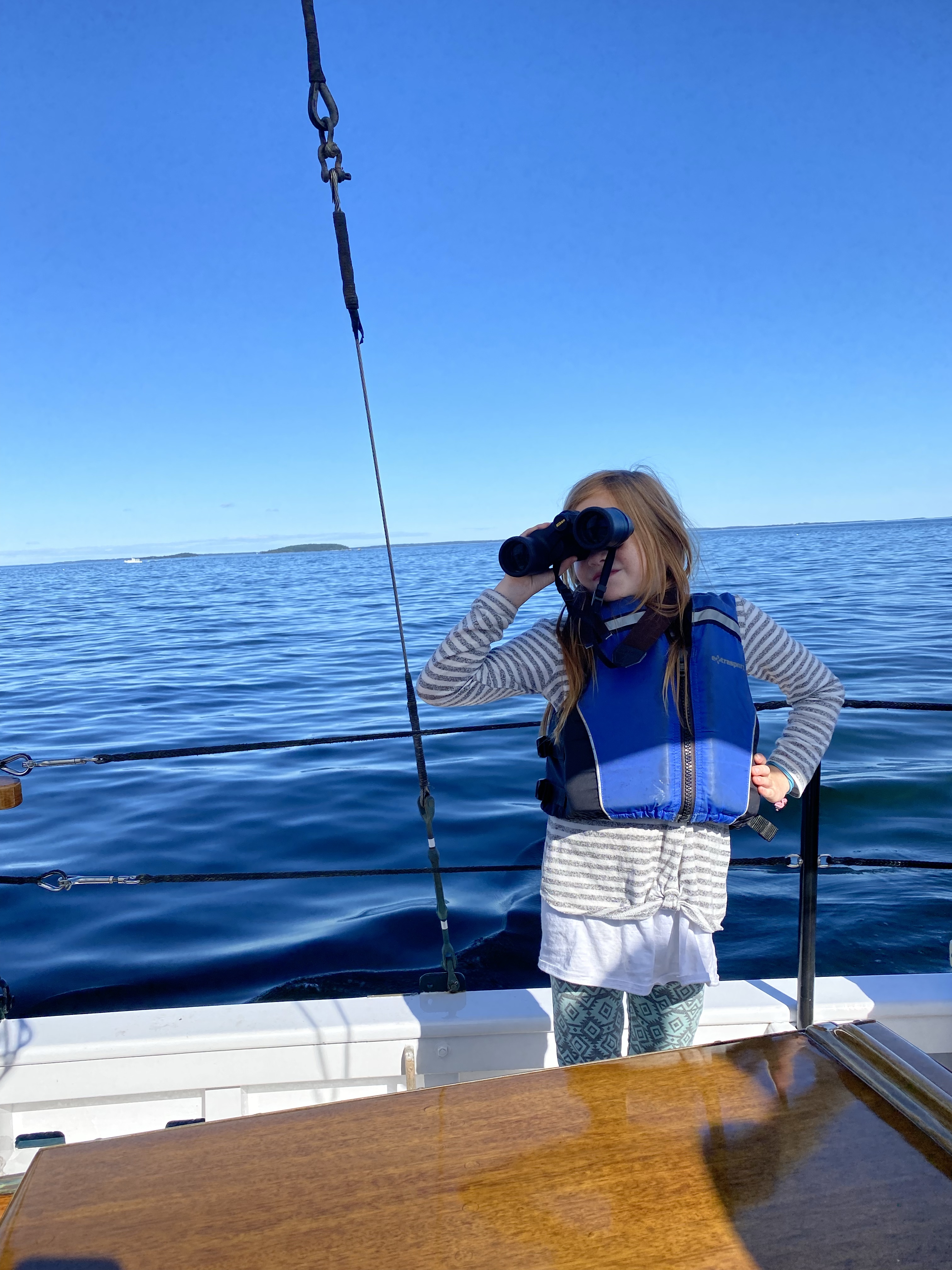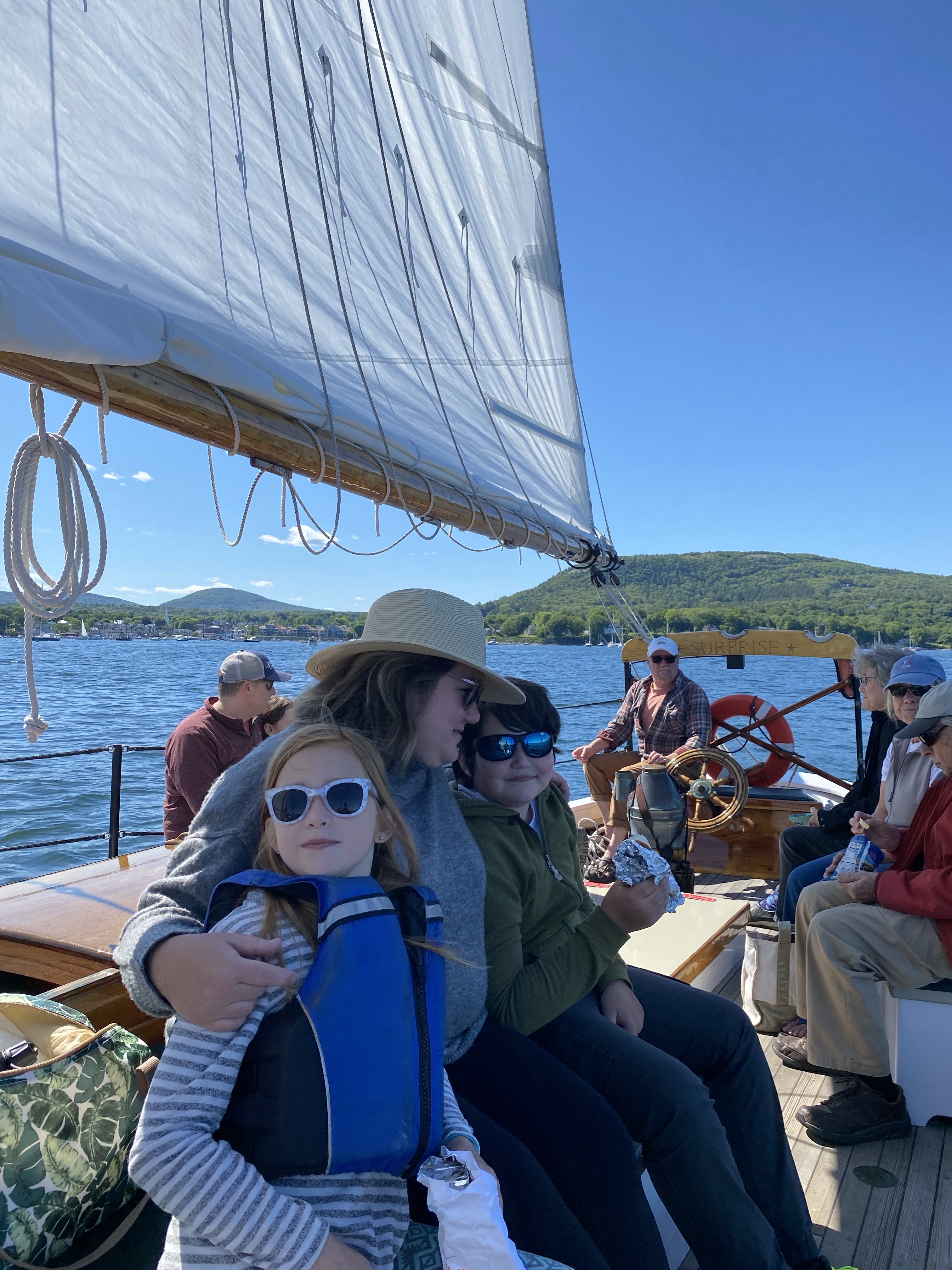 Yesterday we boarded the Schooner Surprise for an afternoon sail around Camden Bay. The sailing company did an amazing job involving the kids and pointing out lighthouses and wildlife. Phineas has developed a fear of being on the water. He wanted to skip the sail, but we talked about how facing your fears helps make them smaller. Phineas decided to give it a try and despite feeling nervous really summoned and ended up enjoying himself.