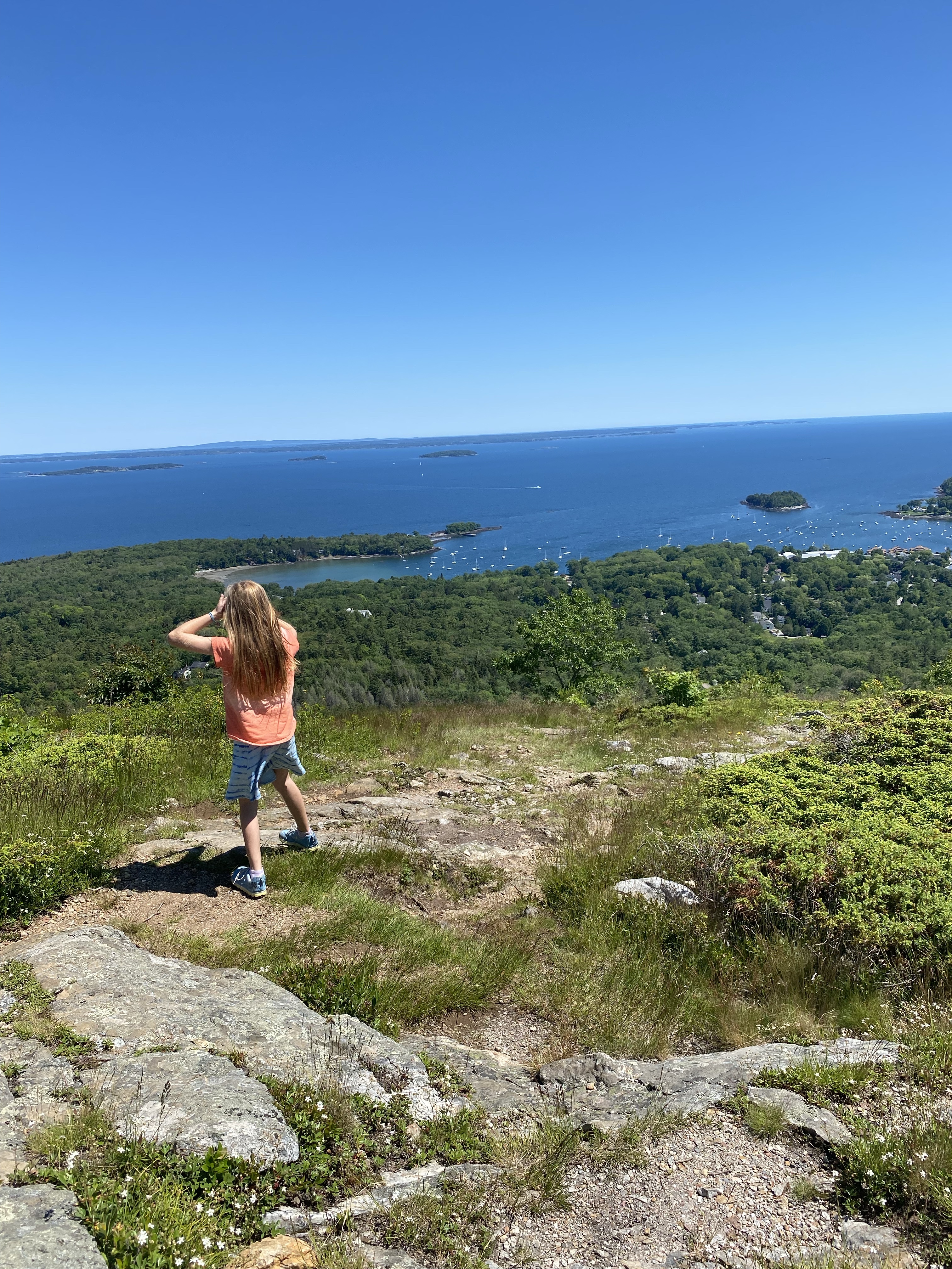Today we embarked on a strenuous 4+ mile round trip hike up to the summit of Mount Battie. The trail was steep and included several sections of rock scrambles. It took us a couple hours to summit but we were rewarded with fantastic views of Camden harbor. There is a little stone castle at the summit that you can climb for even better views.