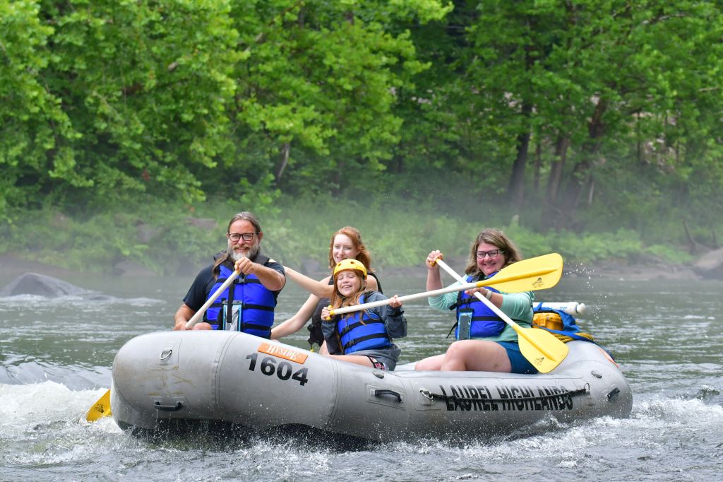 A visit to Ohiopyle wouldn’t be complete without experiencing the famous Youghiogheny River. Jake is an experienced rafter but I’m not (and Penelope is young) so we booked the beginner-level “middle yough” white water rafting trip. I was a little nervous – I’m pretty much the opposite of a dare devil – but it was very tame with mostly class I and a couple class II rapids. We booked a guided trip with Laurel Highlands that started with a bus ride to put in 9 miles up the river from Ohiopyle. The whole trip was about 5 hours, including a short lunch break. Despite exhausted arms, we are all pretty excited to try again next visit!